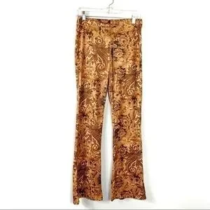 Sense Vintage Brown Paisley Faux Suede Boho Retro Y2K Mid Rise Flare Pants M