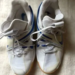 Nike Women’s White and Blue React HyperSet volleyball shoes