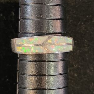 Sterling Silver 925 Modernist Opal Inlay Ring Size 8