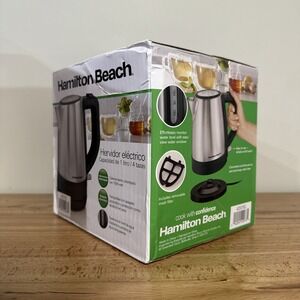 Up for sale is a Hamilton Beach Electric Kettle 1 Liter Cord-Free Stainless Serving Pot model 40978G. In new condition. The box shows some wear as pictured.