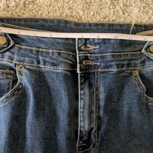 Stylish and comfortable women's blue flared jeans. Perfect for any casual outing.