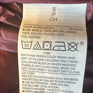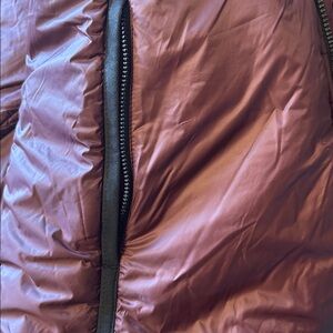 Stay warm and stylish with this purple/burgundy, packable quilted jacket.