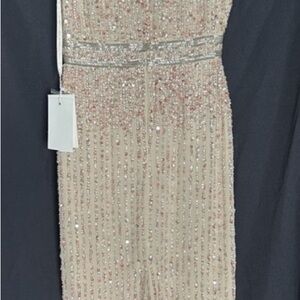 Shimmer in this elegant sequin evening gown, perfect for special occasions. The cream color adds a touch of sophistication.