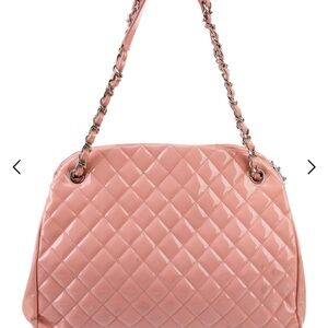 Chanel shoulder bag in blush pink. Features quilted design and chain strap. Iconic elegance for any outfit.