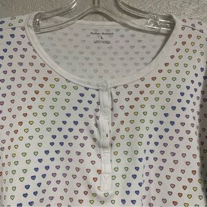 Roller Rabbit Pajama PJ Top Womens L Disco Hearts Henley 3/4 Sleeve Rainbow