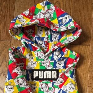 Vibrant Puma hoodie with playful Paw Patrol graphics. Features a mix of red, blue, yellow, and green. Perfect for fun days.