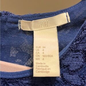 Size small H&M lace dress. Chic navy lace dress with long sleeves. Perfect for elegant occasions. Flattering fit and intricate lace design.
