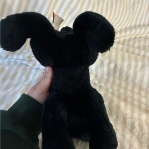 Soft and cuddly black plush dog toy. Perfect for kids and collectors.