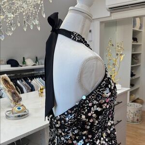 Stunning mini dress with shimmering sequins. Halter neckline. Perfect for parties.