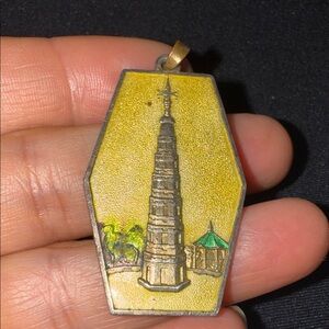 Vintage brass and colorful enameled Pagoda charm, measuring 1” x 1”3/4 long