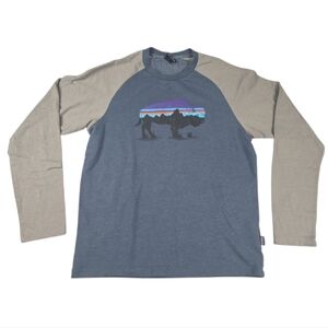 Patagonia Fitz Roy Bison Lightweight Crew Sweatshirt Mens Size Med Blue