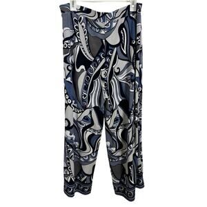 Chico’s Travelers Blue Abstract Wide Leg Crop Pants Size 12/14 Large Slinky