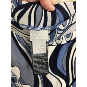 Chico’s Travelers Blue Abstract Wide Leg Crop Pants Size 12/14 Large Slinky Travel Vacation