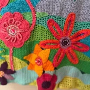 Michael Simon Multicolor Knit Sweater with crochet, sequins and beads.