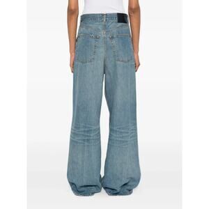 Five-pocket jeans made from cotton and lyocell blend soft denim with bleached-out effect, featuring oversized silhouette with wide leg and front pleats. Belt loops, zip fly and button closure. Jacron logo patch on the waist back.