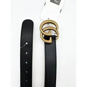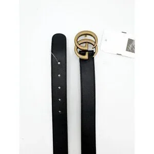 Gucci 55cm Black Leather Double GG Belt Size Small