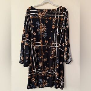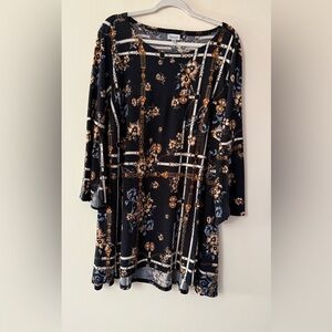 Avenue Knee Length Shift Dress, Boho Pattern, Black Floral and Chain-Link, Sz 20