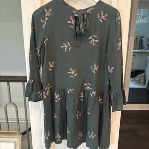 🌸 Effortlessly chic Madewell mini dress in a deep forest green with delicate floral print.