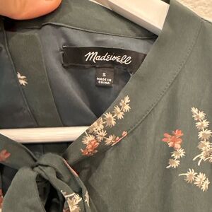 Madewell Green Floral Tiered Mini Dress with Tie Neck | Size S