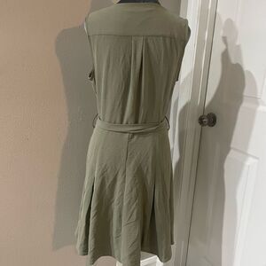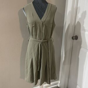 DKNY Women's Olive Green Button Front V-Neck Tank Dress w/ Pockets Size 10