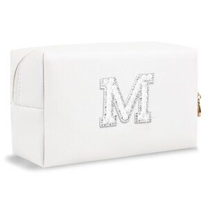 Bride Gifts – Personalized Initial Makeup Bag with Pearl Rhinestone Patch, Prepp