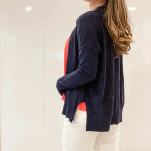 Navy cardi that’s lightweight and a quick grab for an extra layer that pairs with anything. Check out other listings for other items pictured including home decor.