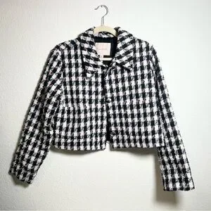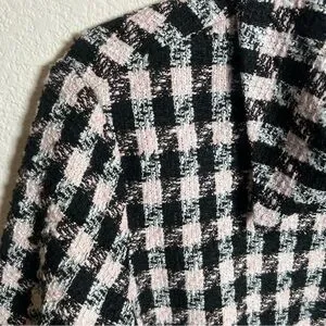 Anthropologie Hutch pink and black (has a bit of glitter to it, couldn’t capture well in photos) tweed plaid blazer - labeled size medium - good condition