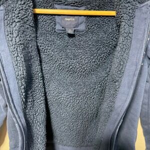 Gap Kids Blue Sherpa Lined Zip Up Hoodie Embroidered Logo Size S 6-7