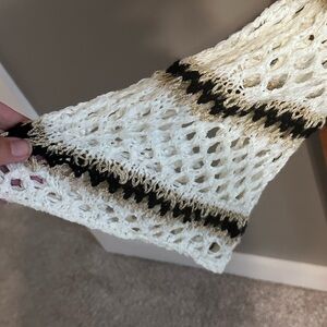 Elevate your wardrobe with this chic open-knit sweater. Featuring a stylish white and black design, it's perfect for layering. Stay cozy and fashionable all season long.