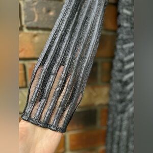 Tadashi Shoji Stunning Black Metallic Striped Bodycon Long Sleeve V-Neck Dress