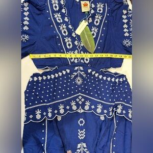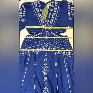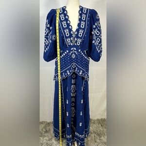 NWT Farm Rio Embroidered Puff-Sleeve Cutout Midi Dress