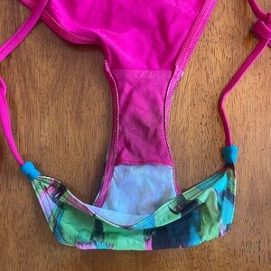 ERES Pink Blue Green Design Bikini Set Size 8 Top with Size 10 Bottom. Designer swimsuit known for its lasting materials and elegant styles.