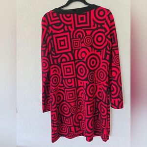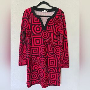 Aryeh Dress Womens Sz L Geo Print Red Black Stretch Knit Dark Romantic Exellent