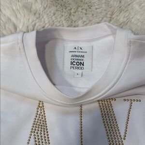 Classic white sweatshirt with bold Armani Exchange logo. Ideal for everyday style.