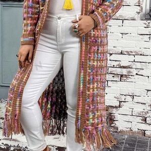 Plus Size Blend Material Fringe Hem Open Front Cardigan