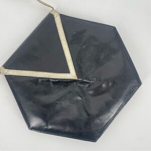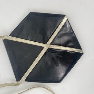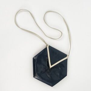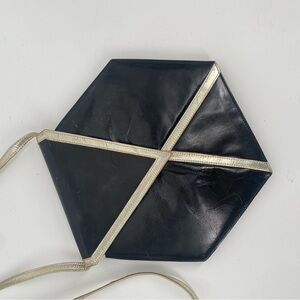 1980s Charles Jourdan Paris Black & Silver Metalic Leather Hexagonal Crossbody