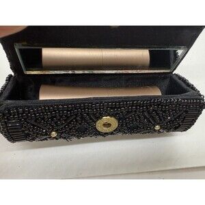 Black Beaded Lipstick Case W/Mirror & Lancome L'Absolu Rouge French Tea Lipstick