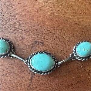 Chic necklace with turquoise stones. Set in a stylish silver chain. Ideal for any occasion.