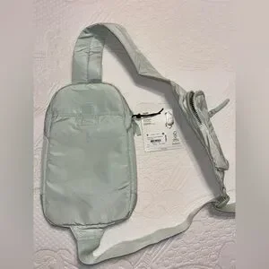 New with tags, Adidas Essentials crossbody sling bag/purse in a gorgeous neutral Linen Green.