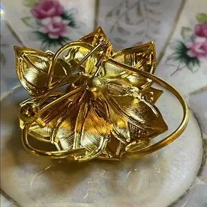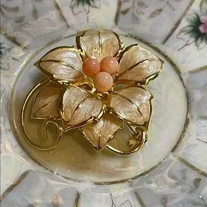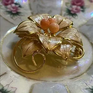 🍄Vintage Gold Plated Metallic Enamel Flower Brooch