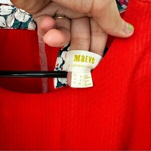 Anthropologie Red Floral Trim Textured Maeve Rousseau Flounced Dress 2