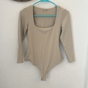 Free People Intimately Truth Square Neck Bodysuit Long Sleeve Stone Gray Tan S