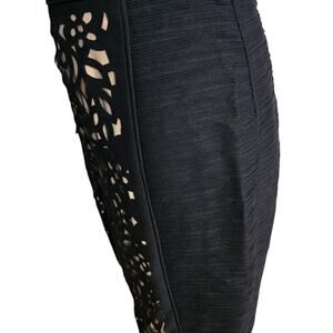 Anthropologie Maeve Black Floral Basalt Laser Cut Eyelet Cutout Cocktail Dress
