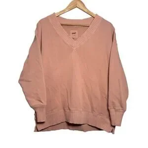 Aerie oversized terracotta/orange V-neck pullover sweater in size XS. Relaxed, slouchy fit with ribbed trim and a cozy worn-in vibe. Good preowned condition with general fading from washing—perfect for buyers who love that vintage, lived-in aesthetic. Soft, comfy, and easy to layer year-round.