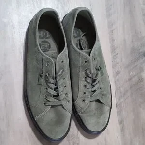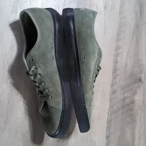 Olive suede sneakers with a sleek design. Perfect for everyday wear. Durable and stylish. Only worn small amount of times, virtually no signs of wear.
