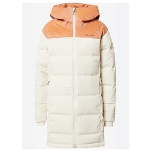 Columbia Women's Insulated Long Puffer Coat Hooded Cream Brown Omni-Tech