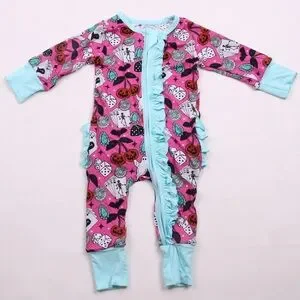 Sweet meets spooky with our Pink Halloween Zippy! Made from buttery soft, breathable fabric — this cozy one-piece keeps your little boo comfy all night long, whether they’re trick-or-treating or snuggling at home.