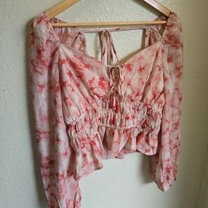 Dizzy Lizzy Low Cut Tie Front/Back Elastic Shoulder/Waist Tie-Dye Blouse Juniors XL