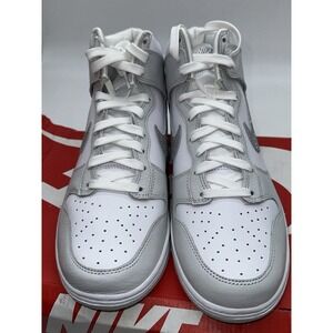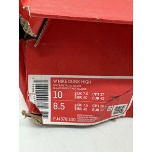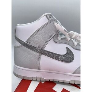 DMG Box Nike Dunk High 'Silver Glitter Swoosh' White Sneakers, Wmn 10 FJ4578-100