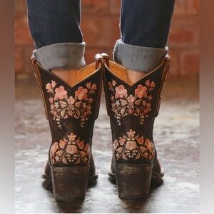 The Old Gringo Sora Chocolate 8" Boot L841-18 is made with dark brown distressed leather and decorated with intricate, feminine, floral embroidery in light pink thread. These Old Gringo Boots feature a stacked heel and a round pointed toe. The neutral colors make the Sora Chocolate a great match for any outfit and any season. The perfect height to wear with a sundress. Old Gringo Boots require no break in period, run true to size, and are made to have a vintage, worn for years look. Buy the Sora Chocolate Old Gringo Boots and you'll be the envy of all your friends.